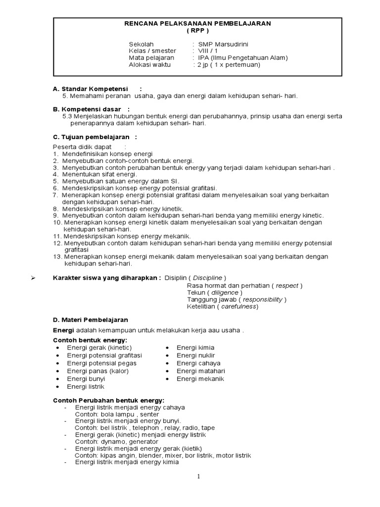 Rpp Energi Dan Usaha Supervisi
