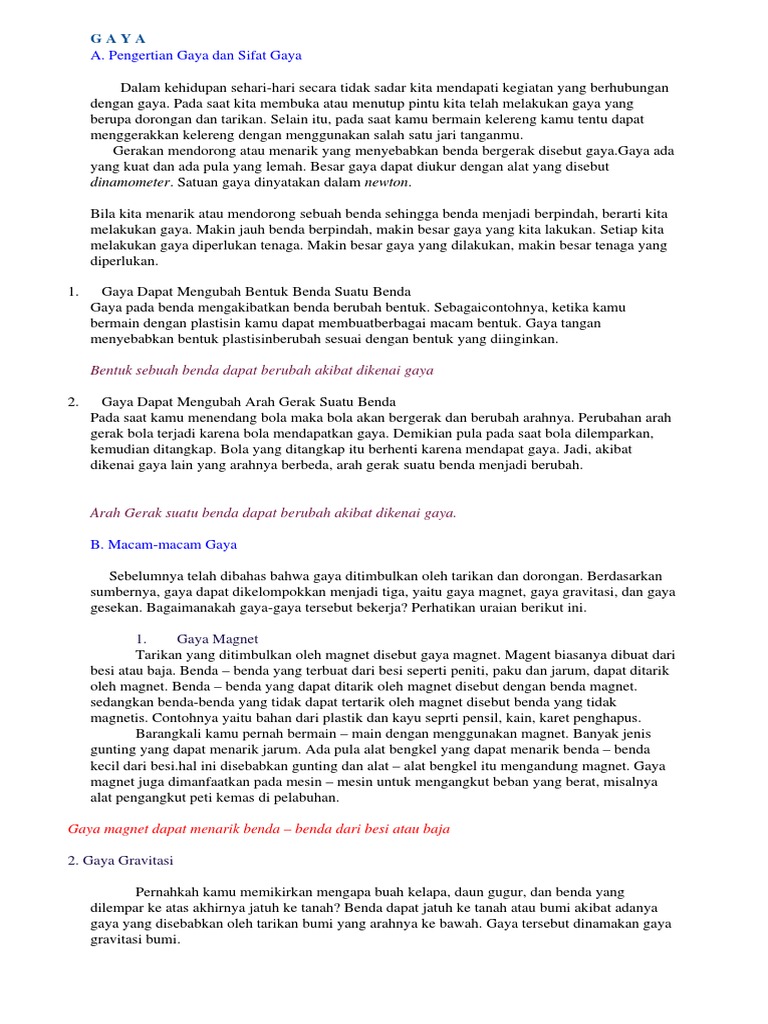 Materi Ipa Kelas Iv Semester Genap Gaya Dan Gerak Rumushitungcom
