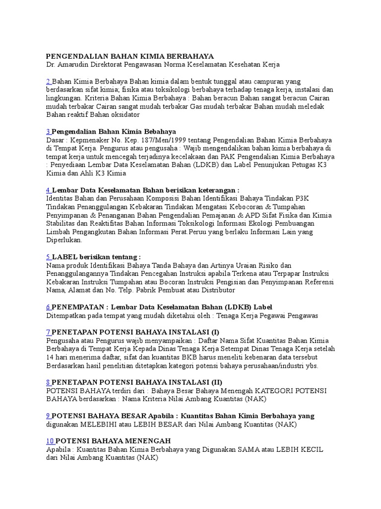 Pengendalian Bahan Kimia Berbahaya Di Tempat Kerja Kep Men Ppt