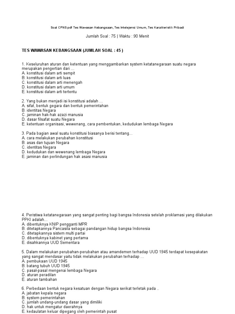 Soal Cpns Pdf Tes Wawasan Kebangsaan