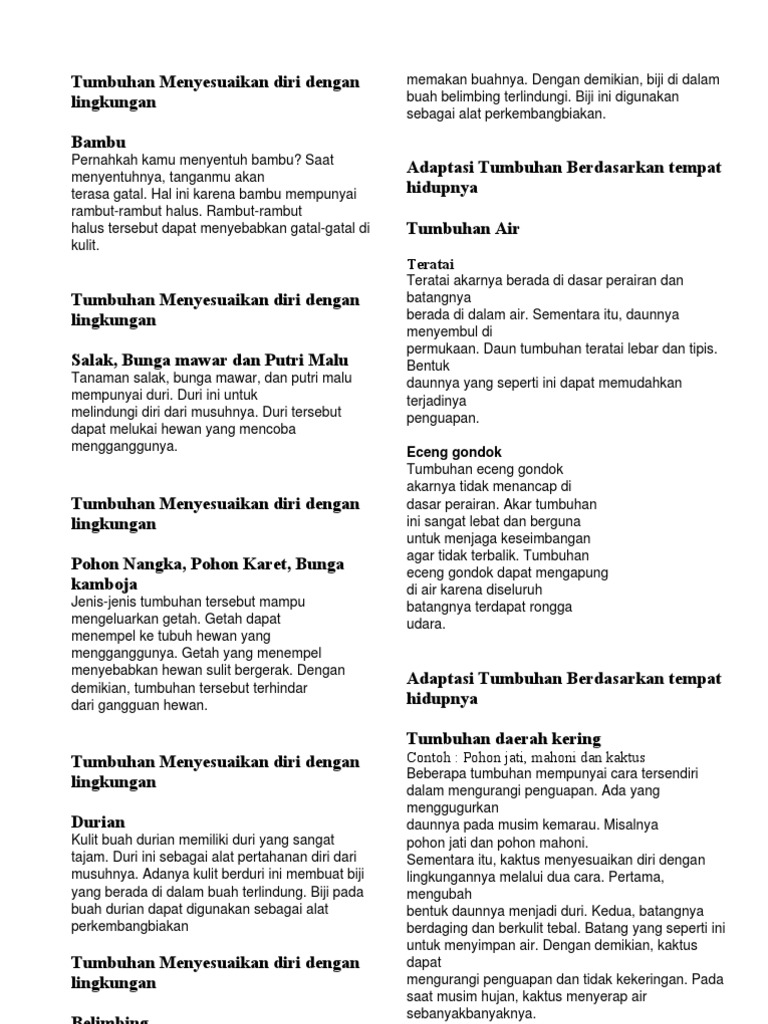Tumbuhan Menyesuaikan Diri Dengan Lingkungan
