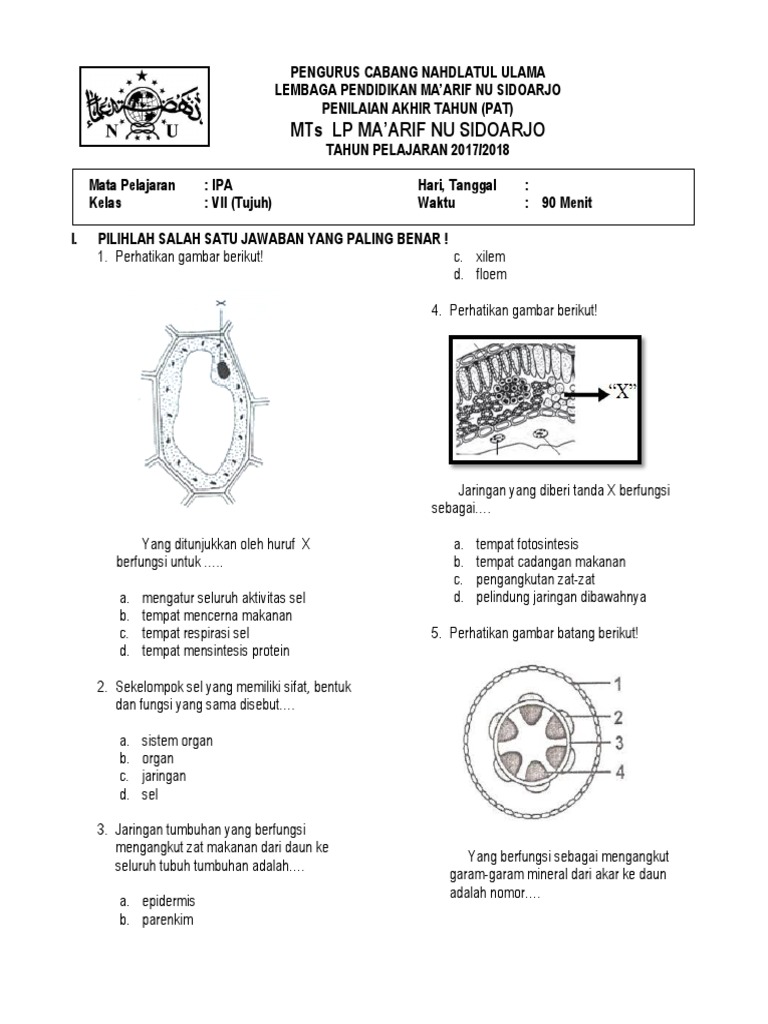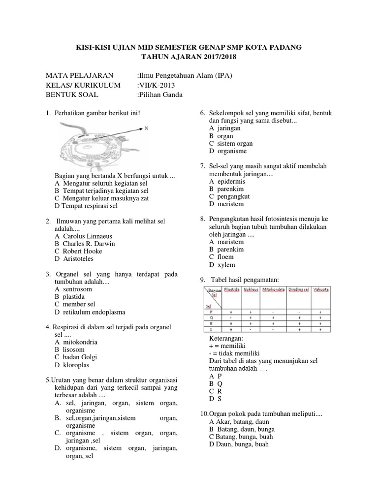 Kisi Kisi Soal Ujian Mid S2 Kelas 7 K 13