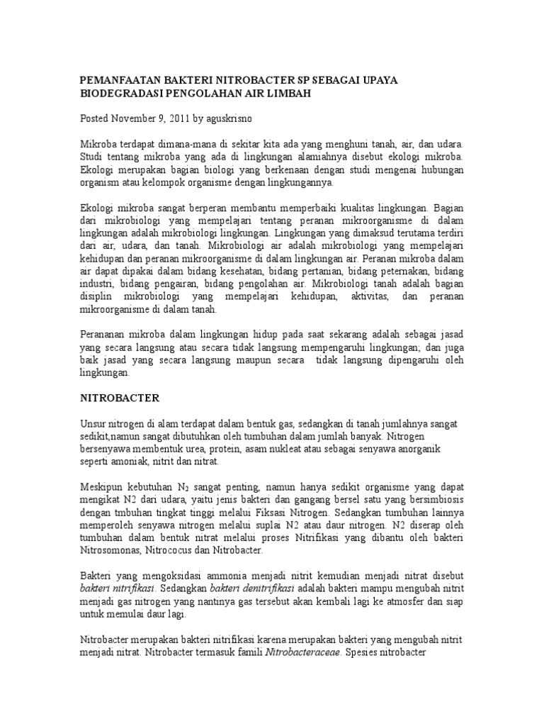 Pemanfaatan Bakteri Nitrobacter Sp Sebagai Upaya B