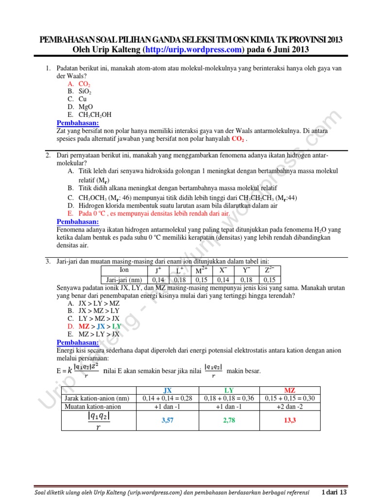 Pembahasan Soal Pilihan Ganda Osn Kimia Tingkat Provinsi 2013pdf