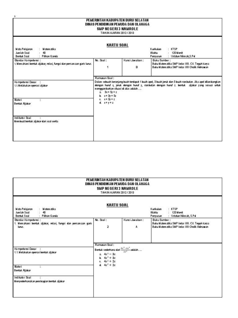 Ustatun Nikmah Kartu Soal Viii Smstr 2