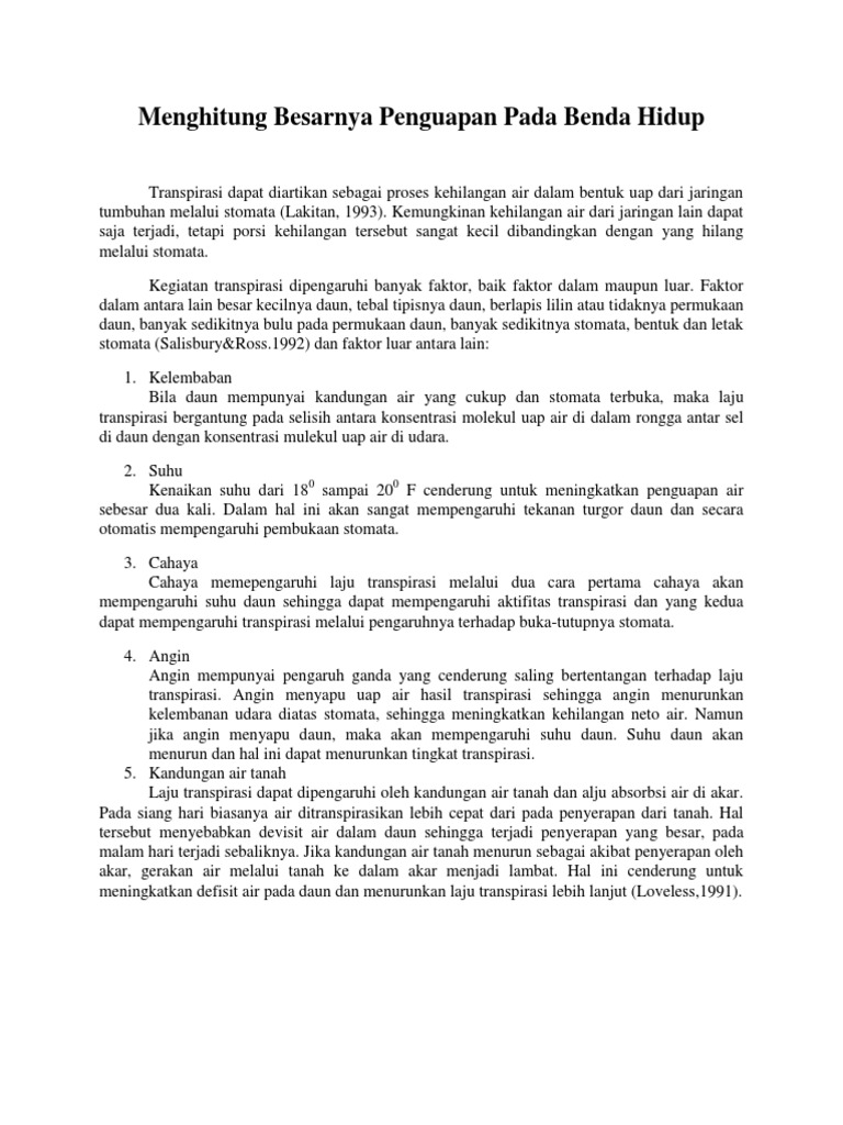 Menghitung Besarnya Penguapan Pada Benda Hidup