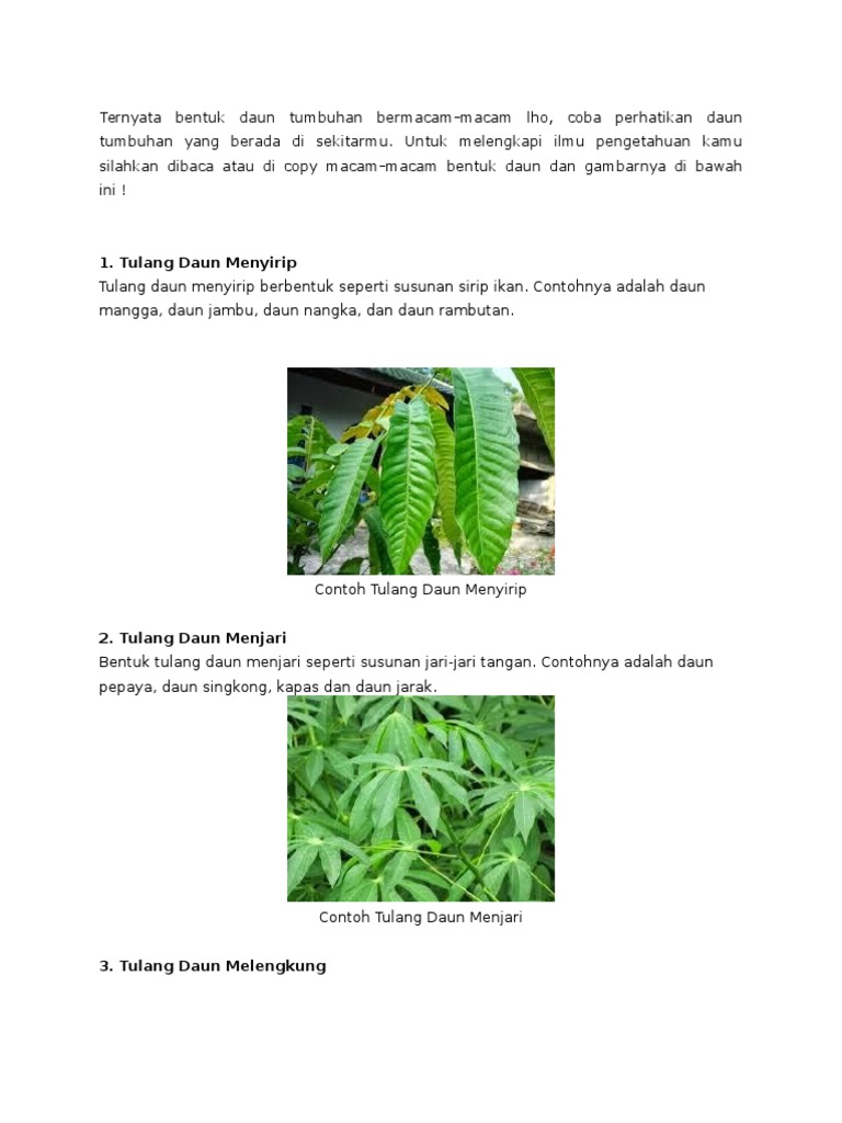 Bentuk Bentuk Tulang Daun Pada Tumbuhan Hijau Juragan Les