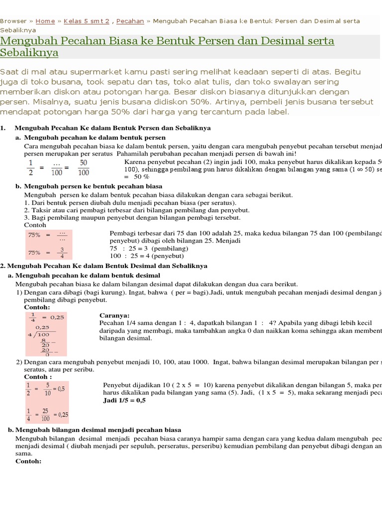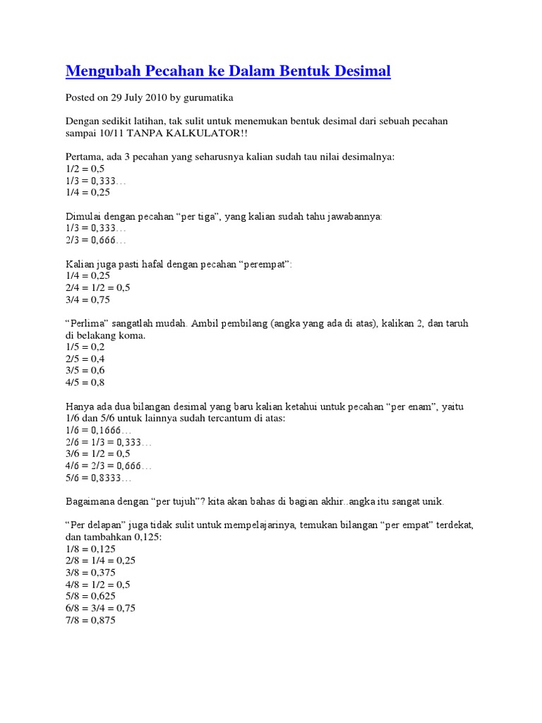 Cara Mengubah Pecahan Ke Desimal Dan Sebaliknya
