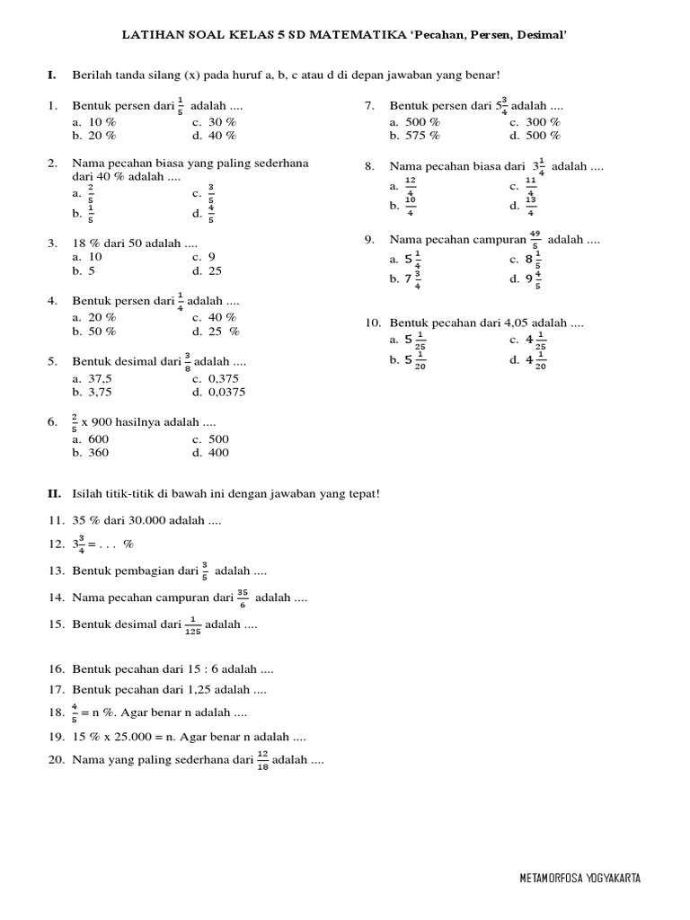 Latihan Soal Merubah Persen Menjadi Pecahan Biasa Dan Kunci Jawaban