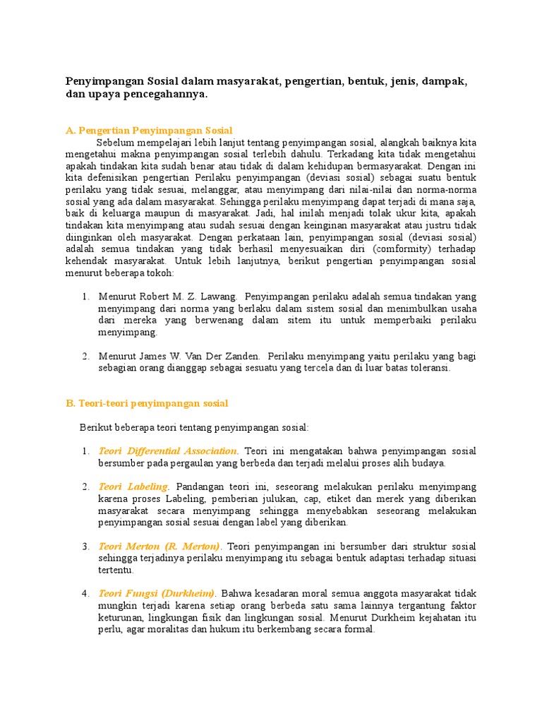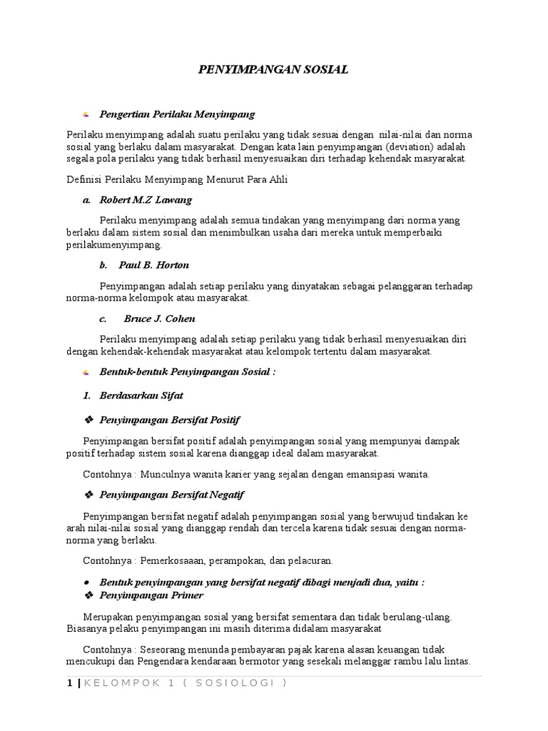 Doc Contoh Penyimpangan Sosial Di Lingkungan Masyarakat Vickardin