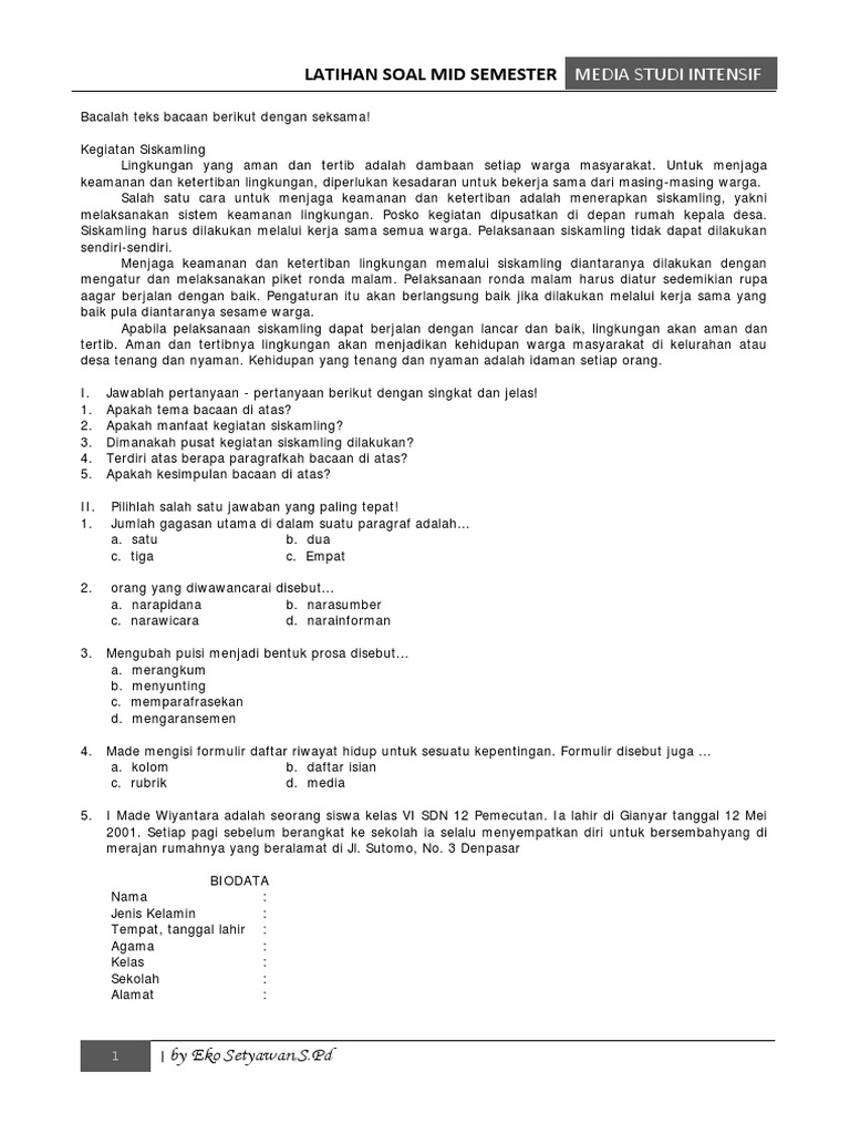 Lat Soal Uts Bindo Bing Gasal Kls 6