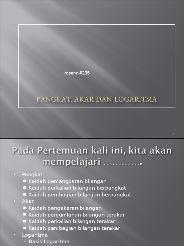 Inilah yang anda cari tentang Pangkat Bentuk Akar Logaritma.