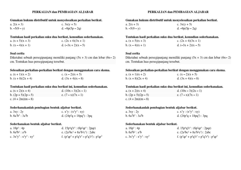 Perkalian Dan Pembagian Aljabar
