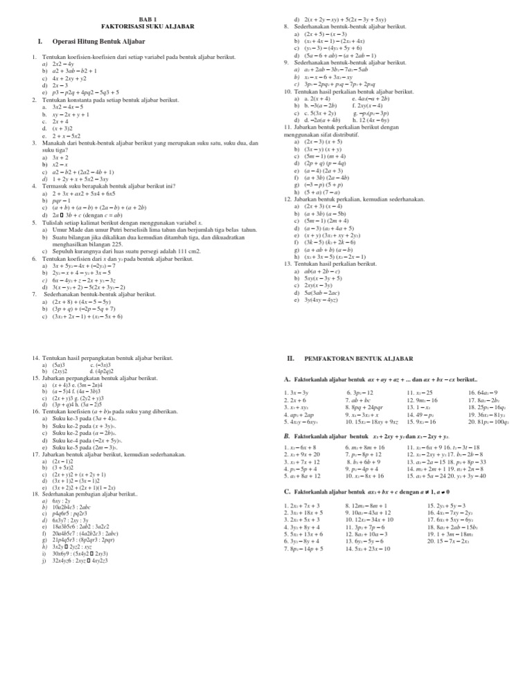 1 Bentuk Aljabar